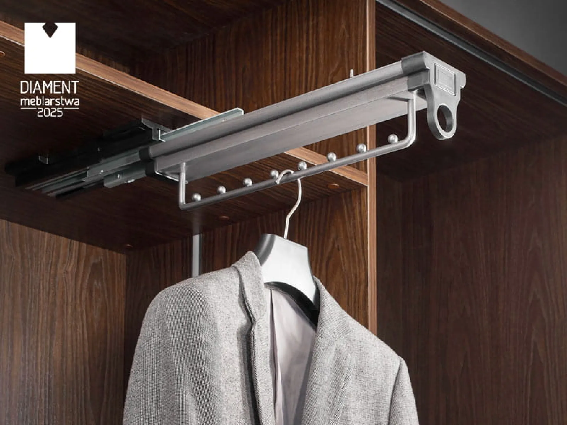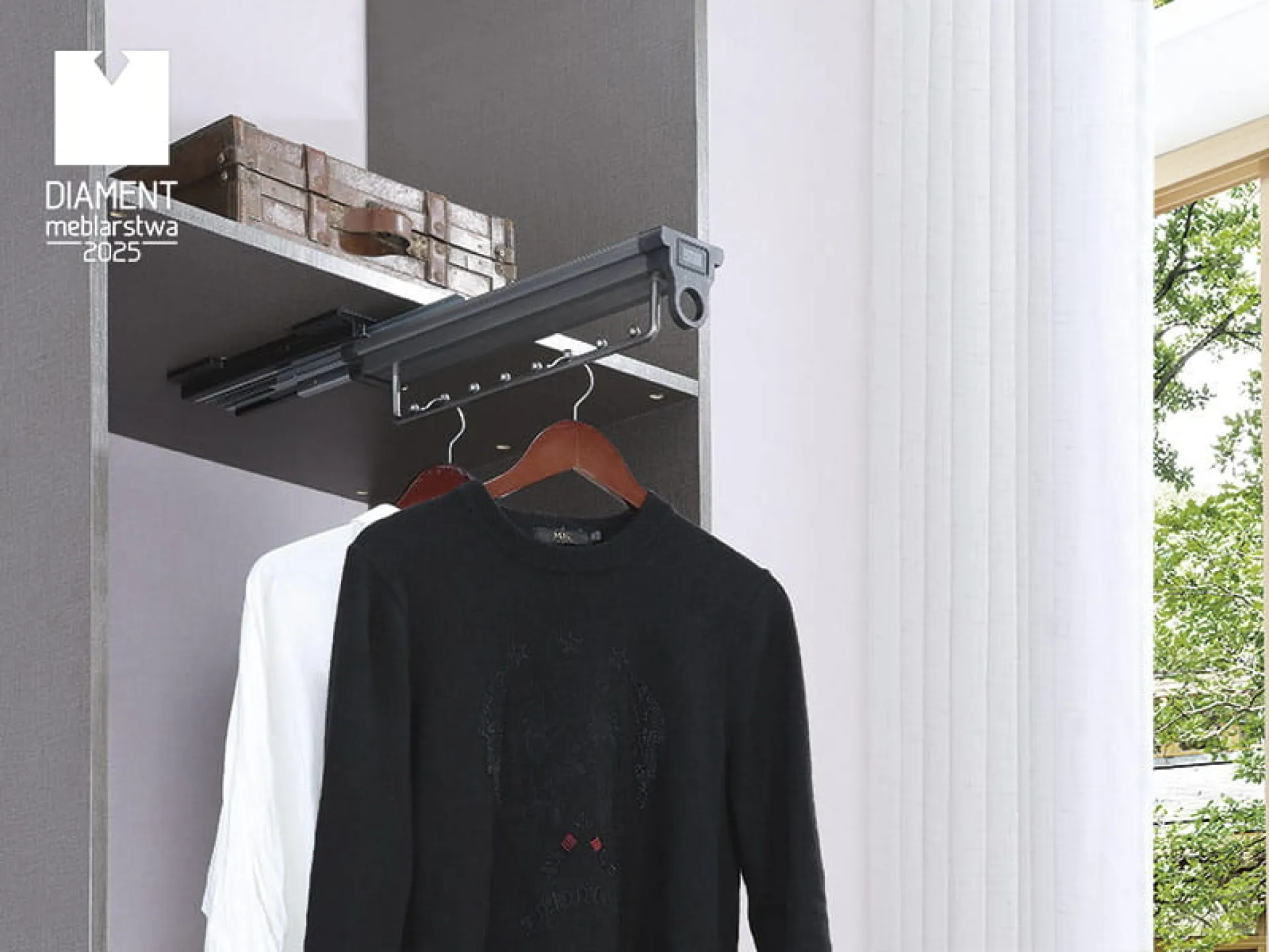 Tento model, rovnako ako ostatné produkty série SYMPHONY, je vybavený systémom plného výsuvu. Umožňuje úplné vysunutie zo šatníka, čo zaručuje pohodlný prístup ku všetkým uloženým veciam, aj k tým umiestneným na úplnom konci vešiaka.
