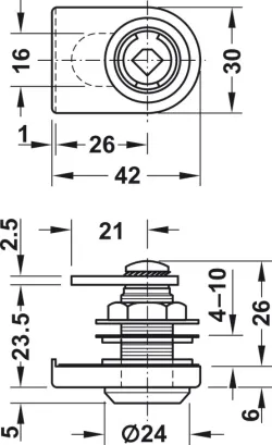 Zámok pre sklenené dvere o hrúbke 4-10 mm. Montážny otvor 26 mm. Nutné dokúpiť vložku.