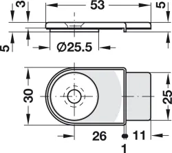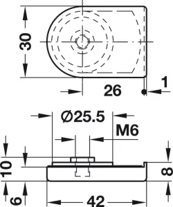 Protikus k zámku na sklenené dvere. Pre zamykanie dvojkrídlových sklenených dverí. Pre hrúbku skla 4-10 mm. Montážny otvor 26 mm.