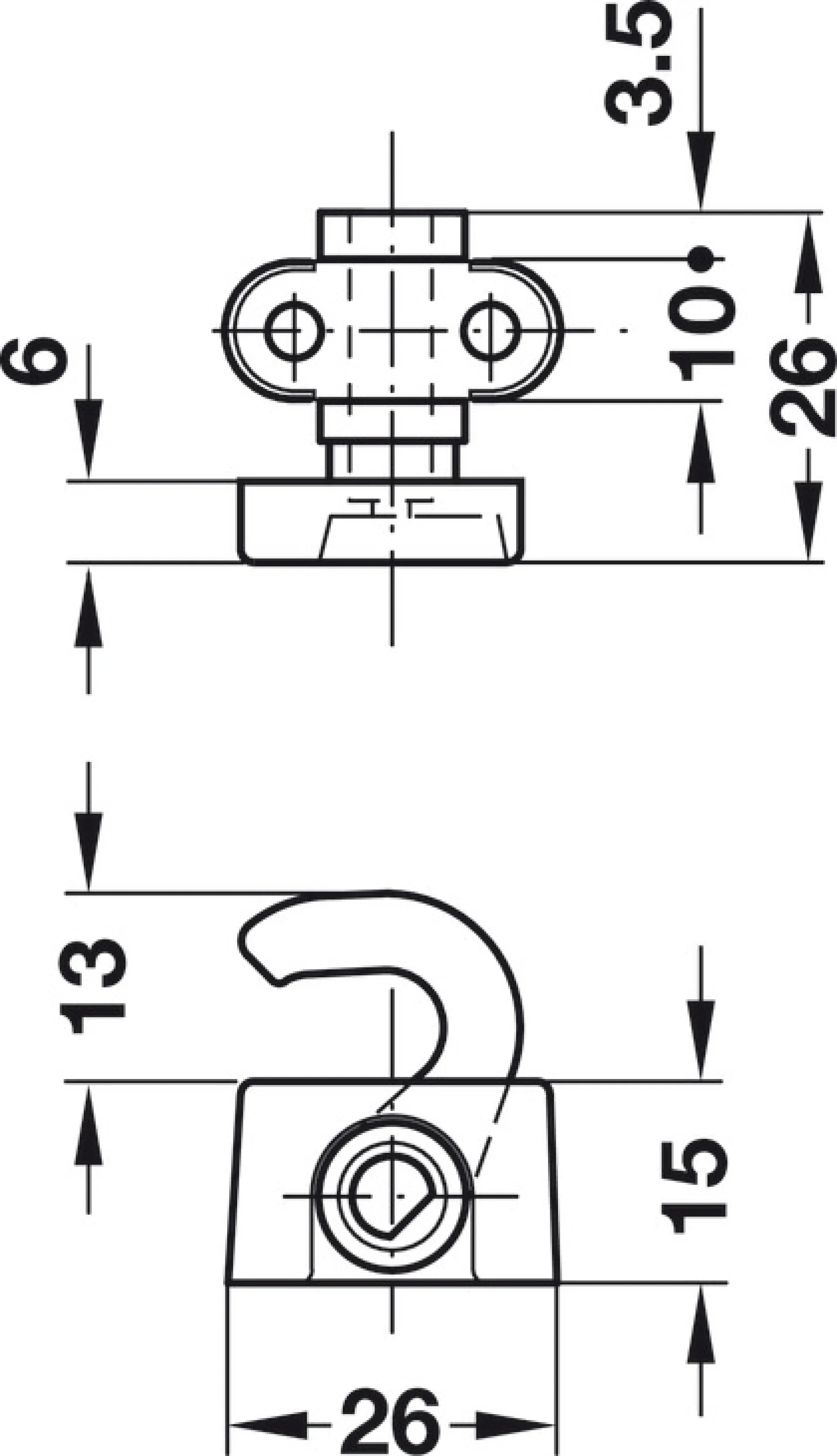 Záchytný háčik k trojcestnému zámku.